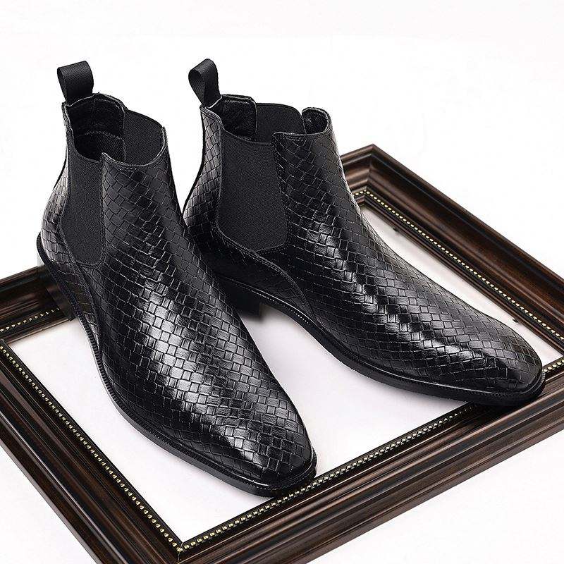 Nouveauté Bottes Chelsea à motif tissé grande taille Bottes à la cheville tendance pour hommes Grande taille 38-48