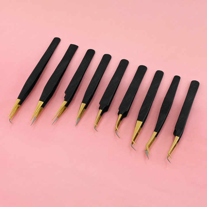 Nom du produit:Nouvelle arrivée Lash Fan Pickup Tweezer Gold Tip pince à cils