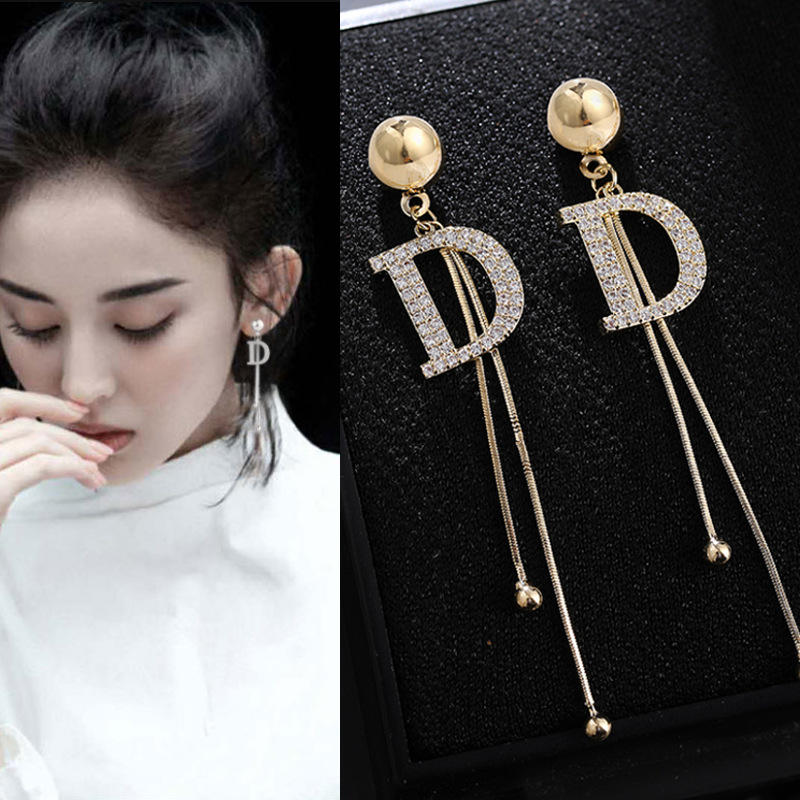 Nouvelle Arrivée Lettre D Gland Designer Boucles D'oreilles Collection Bijoux De Luxe Strass 925 Boucles D'oreilles En Argent Dernier Catalogue