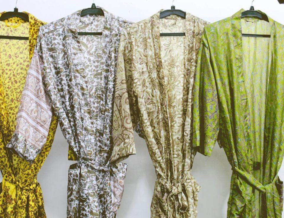 New Arrival Lightweight Silk Saree Kimono Robe Vintage Silk Kimono Women Kimono Holiday Kimono Robe for Women