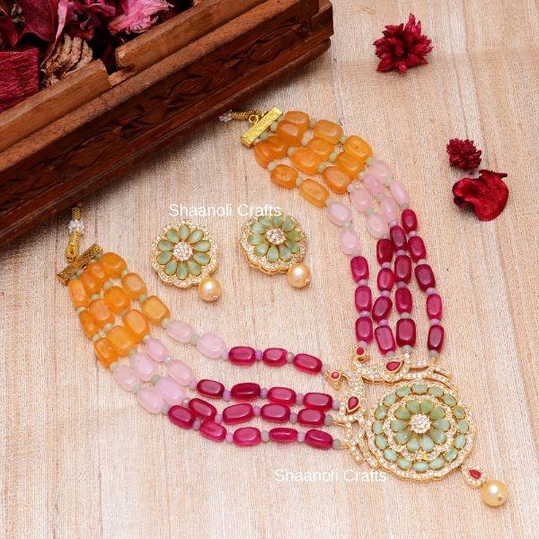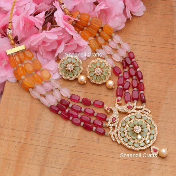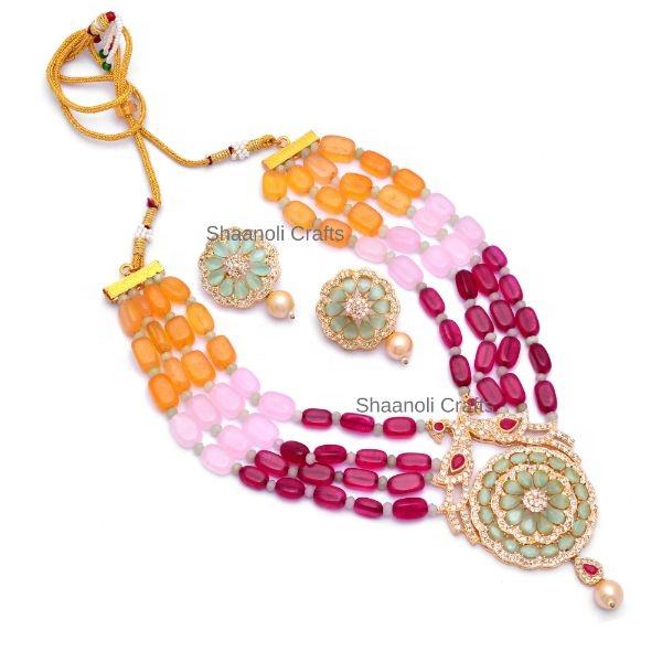 Nouvel arrivage de collier de mariée Long Design paon Rani Haar, ensemble de collier de mariage perlé Rajasthani Rajwada
