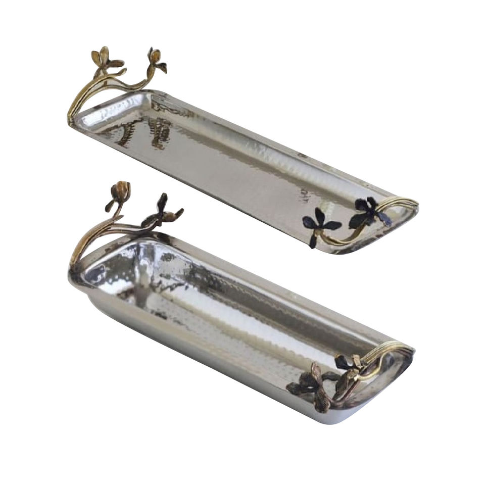 Plateau de service en métal nickelé à poignée unique de style unique Plateau de service pour restaurant d'hôtel à domicile Plateau de table pour hôtels de restaurant