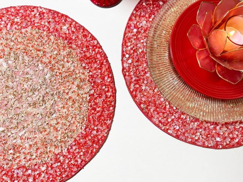 Nouveauté, sets de table ronds de luxe, faits à la main, brodés, écologiques, personnalisables pour mariage, avec perles pour la décoration de la maison