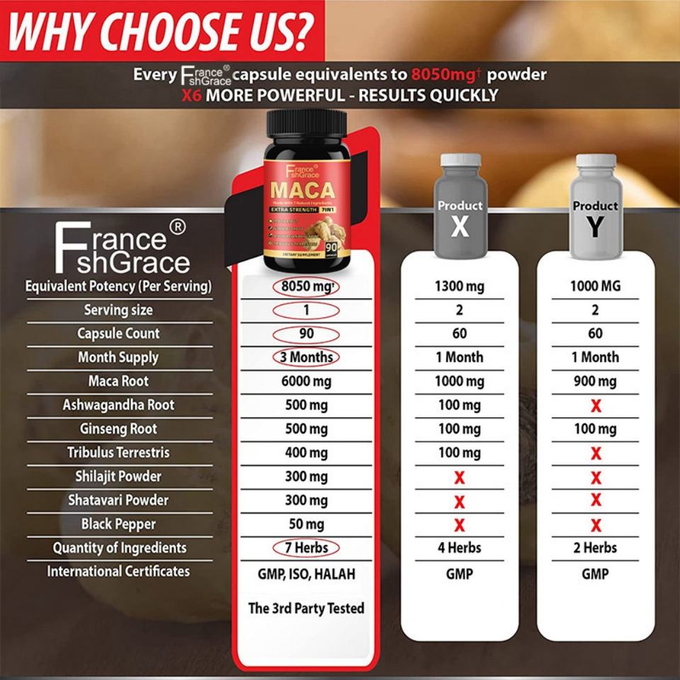 Nouvel Arrivage : Complément de Maca pour la Performance et l'Humeur, Améliore la Circulation Sanguine, 90 Capsules de Maca