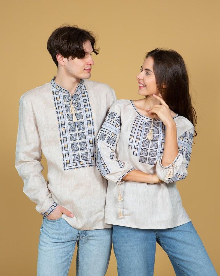 Ensemble de Couple assorti avec broderie à manches longues, Top en coton et chemise, robe de soirée, nouvelle collection