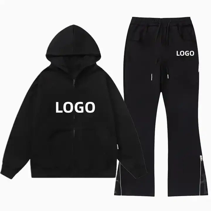Nouveauté Survêtements pour hommes à épaules tombantes avec fermeture éclair 100% coton French Terry Logo personnalisé Survêtements surdimensionnés pour hommes avec fermeture éclair délavée au soleil