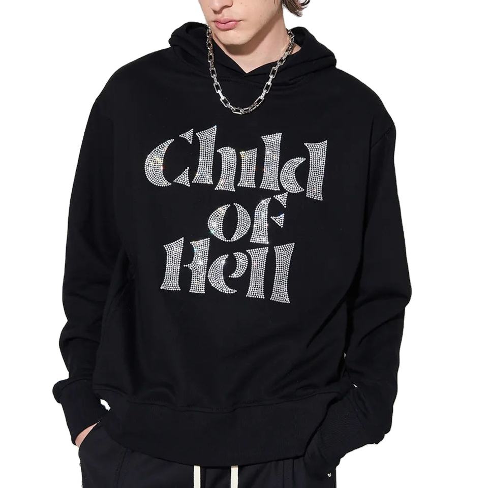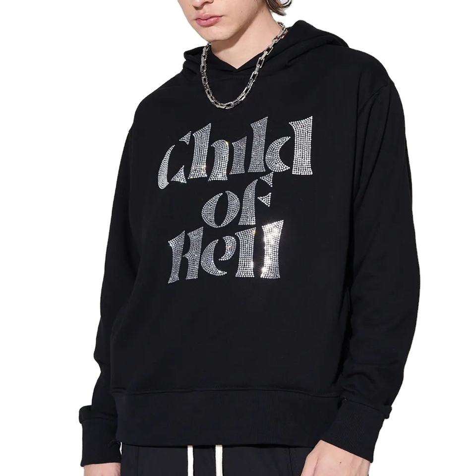 Nouveauté : Sweats à capuche personnalisés pour hommes, hiver, avec strass, 100% coton mélangé, teinture unie