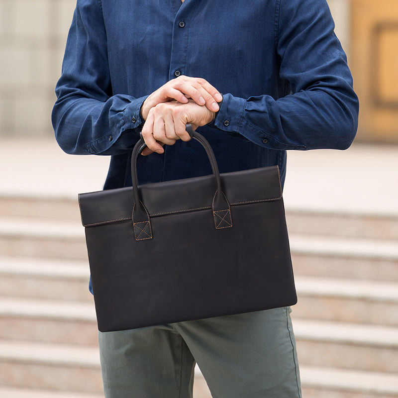 Nouveauté Sac à bandoulière pour ordinateur portable en cuir véritable Crazy Horse de style rétro simple vintage pour homme Sac à main