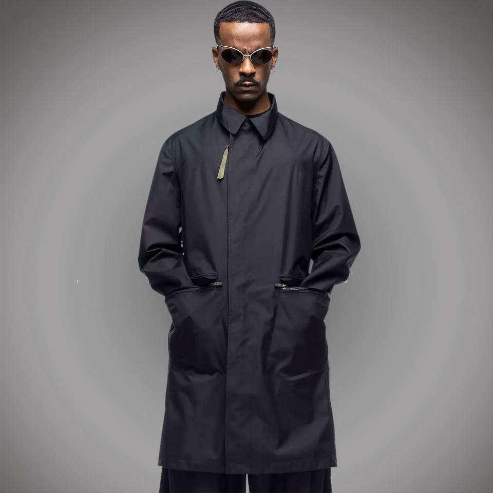 Nouvelle arrivée hommes Cyberpunk Style toile mince veste respirant noir à capuche imperméable Streetwear longue longueur acronymes conception