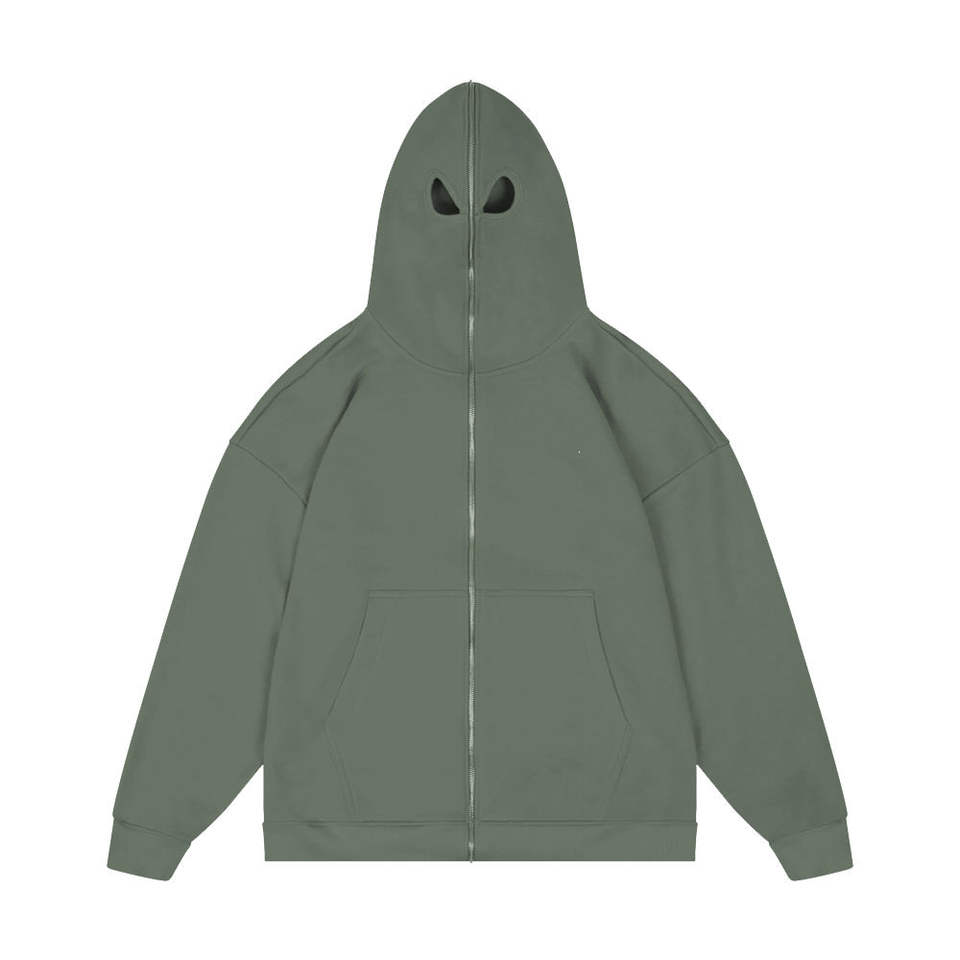 Nouvel Arrivage – Sweat à Capuche Balaclava Entièrement Zippé pour Homme, Épaules Tombantes, Masque Facial Complet, Service OEM