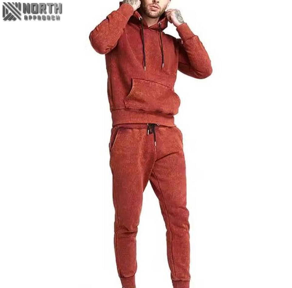 Survêtement à capuche pour hommes, jogging lavé à l'acide, logo zippé, impression unie, saison d'hiver, survêtements de jogging pour le football