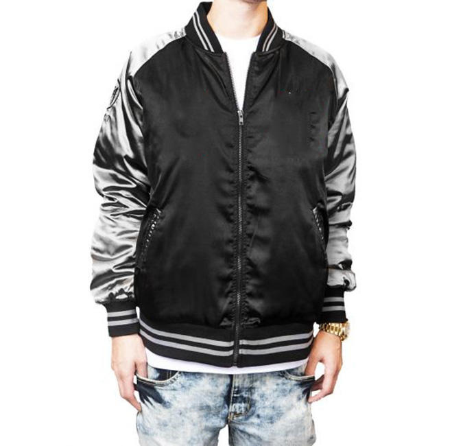 O-Neck Collar Satin Bomber Baseball