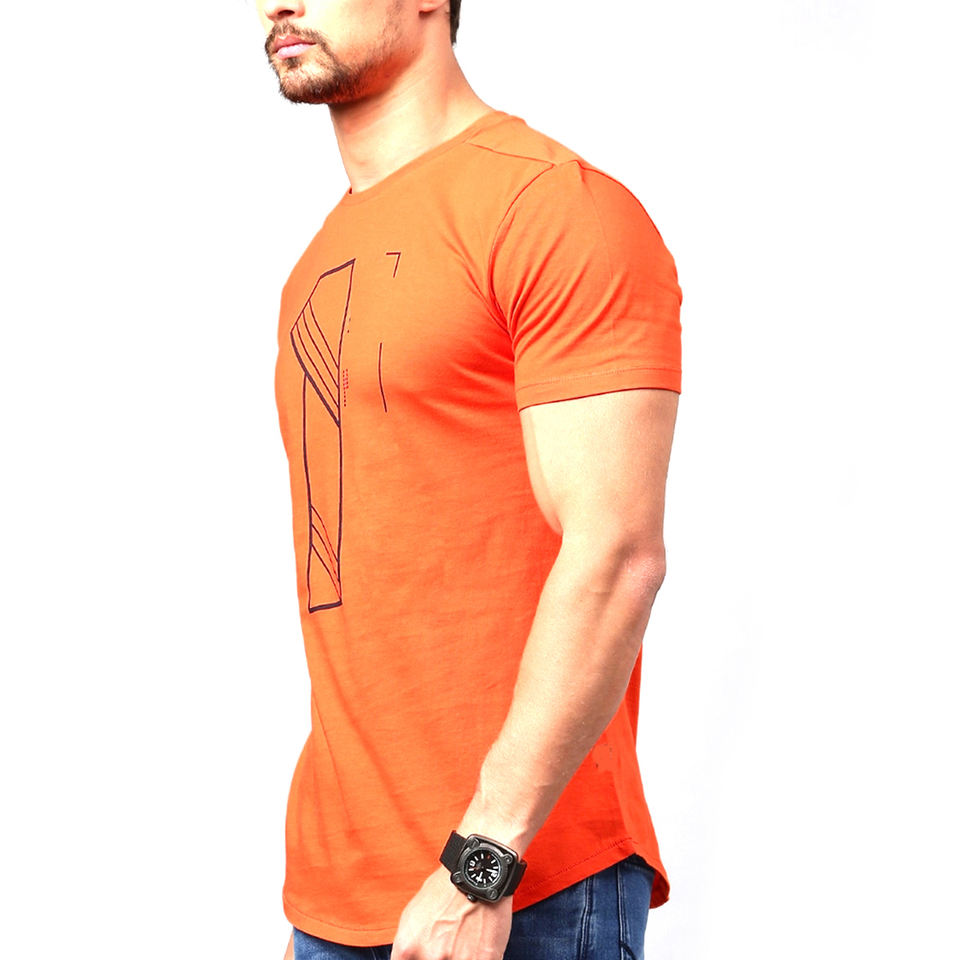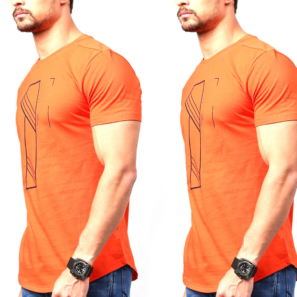 Vente de gros T-shirt d'été orange imprimé à manches courtes pour hommes avec logo personnalisé 100% coton