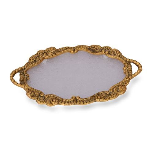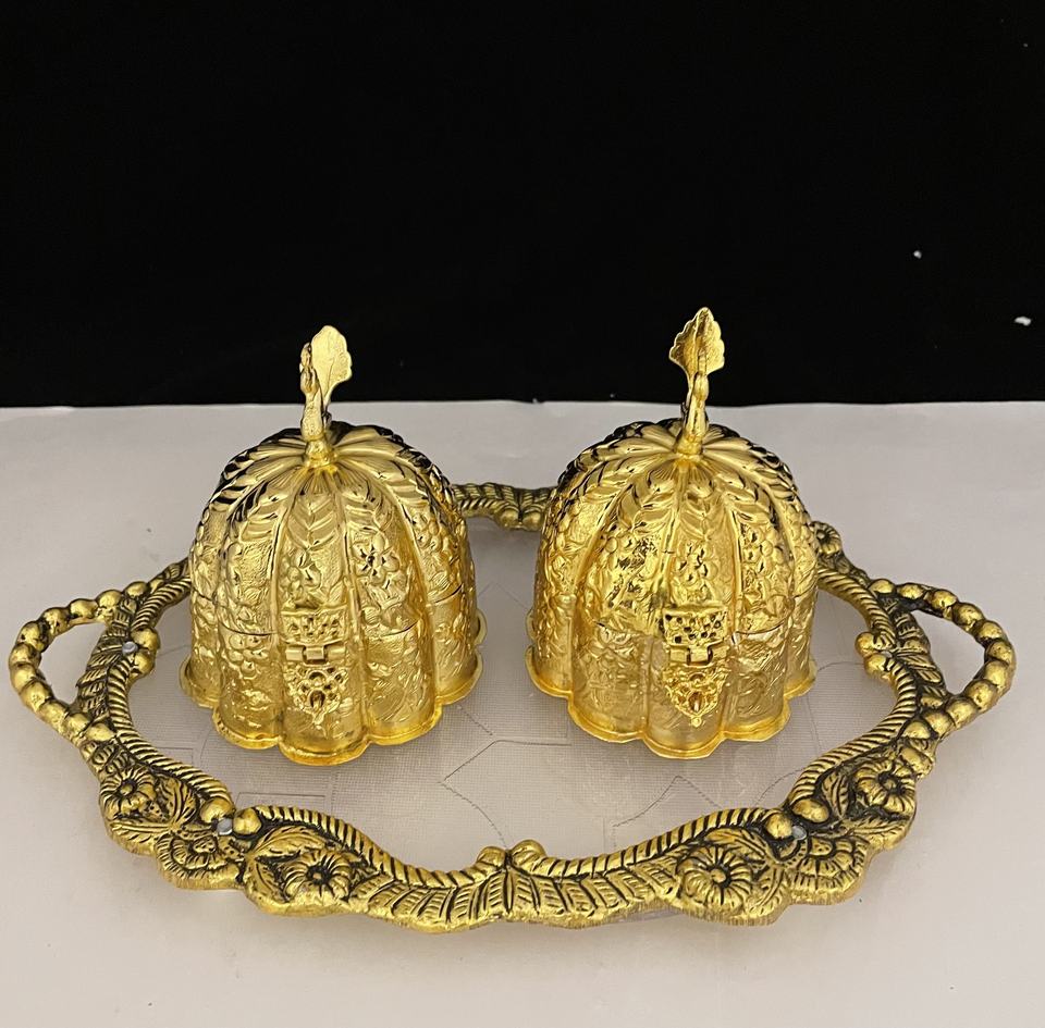 Nom du produit:PLATEAU OVAL DORÉ PETIT ET 2 BOÎTE DE PAACOCK
