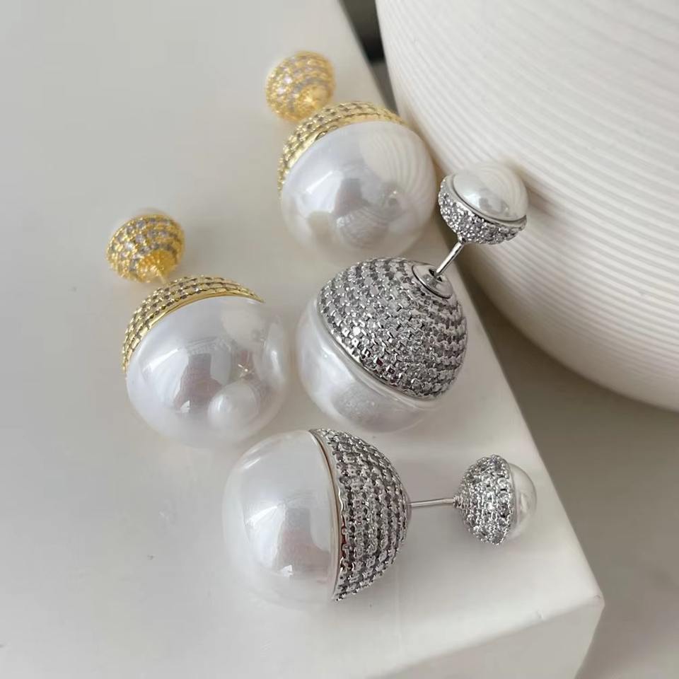 New Arrival Micro Pave Zircon Ball Pearl Stud Earrings Trendy Religious Style Gold Rhodium Plated Diamond Fashion Made Brass