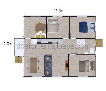 Nom:3 chambres 2 chambres maisons de conteneurs Extensible Container House