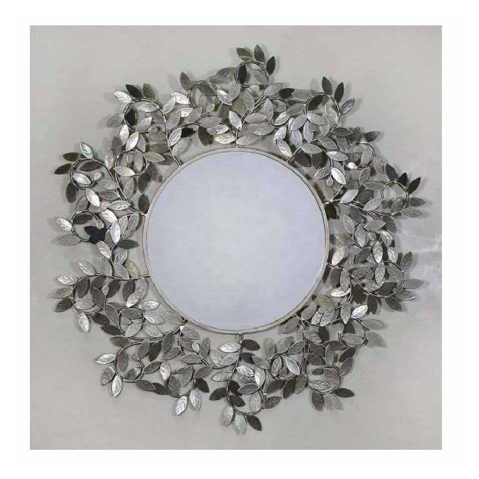 Nouvel arrivage de cadre de miroir mural carré en fer à feuilles dorées de style européen moderne finition polie à la main décorative