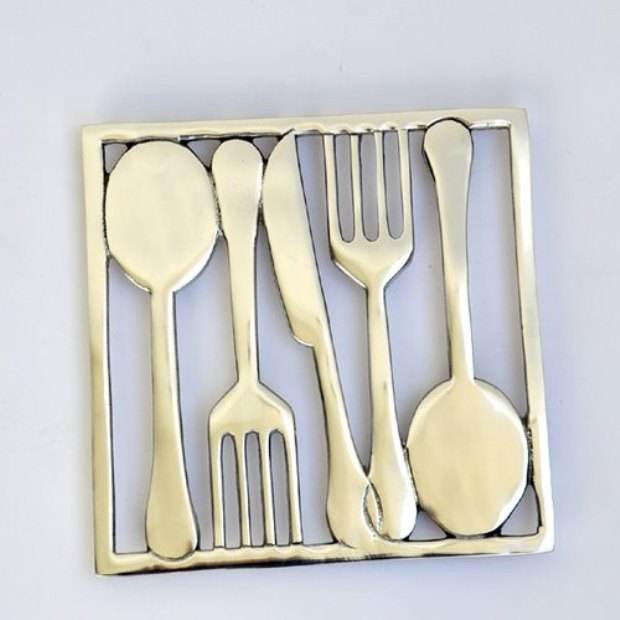 Nouvel arrivage Dessous de plat moderne carré en métal fait à la main Dauphin Design pour la cuisine, la salle à manger et le comptoir