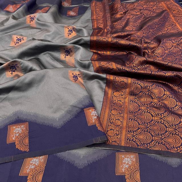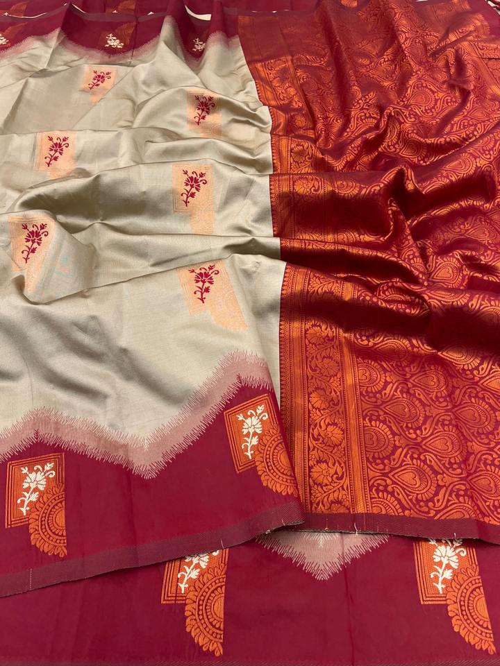 Nouvel arrivage de robe de style moderne saree en soie de Banarsi pure avec kanjivaram pattu complet Zari travail femme mode