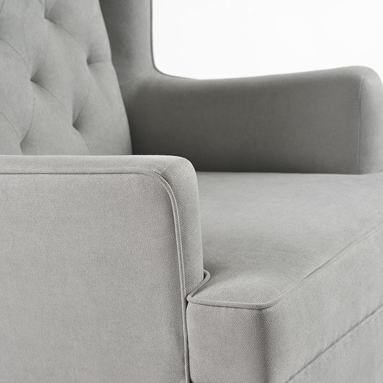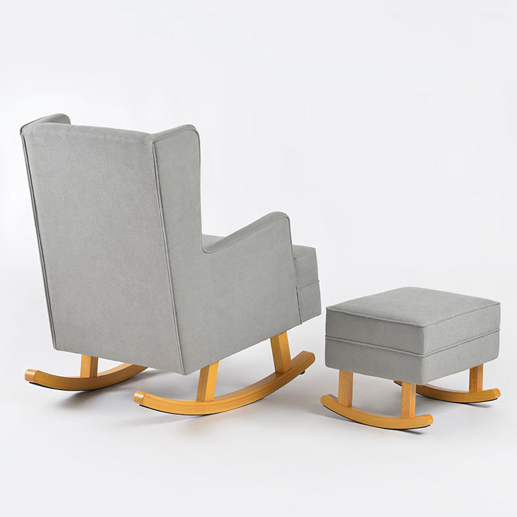 Nouvelle arrivée Fauteuil à bascule moderne en bois avec tissu en lin Chaise d'allaitement écologique pour le salon et l'alimentation