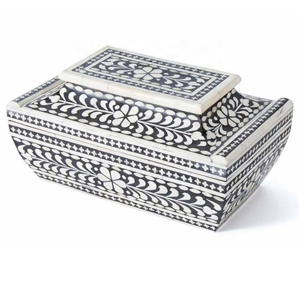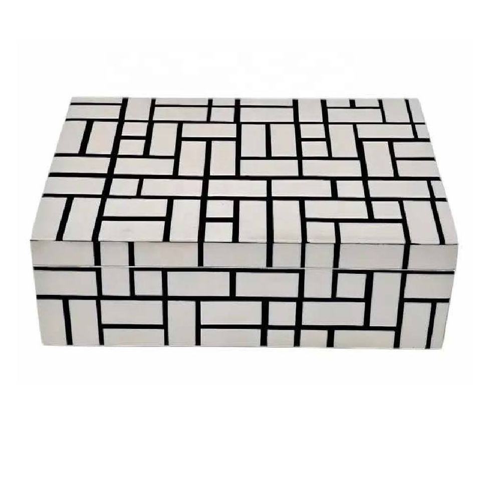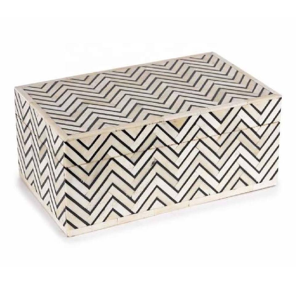 Nouvelle arrivée : boîte de rangement à bijoux décorative rectangulaire moderne en os massif avec organisateur