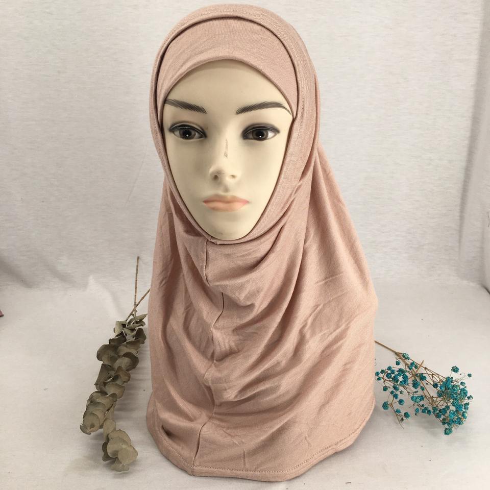 New Arrival Muslim Lady Instant Hijab With Caps Wholesale Solid Color Plain Instant Square Hijab