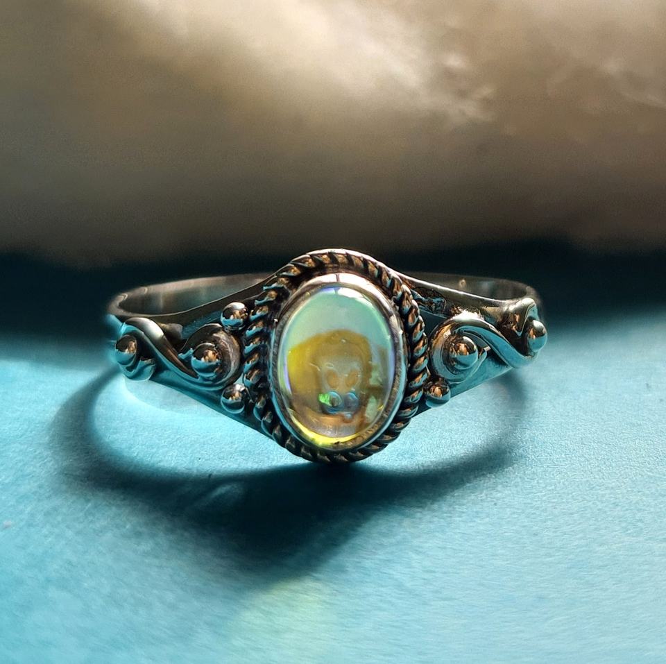 product name:Mystic Rainbow Gemstone 925 Sterling Silver Moon Ring