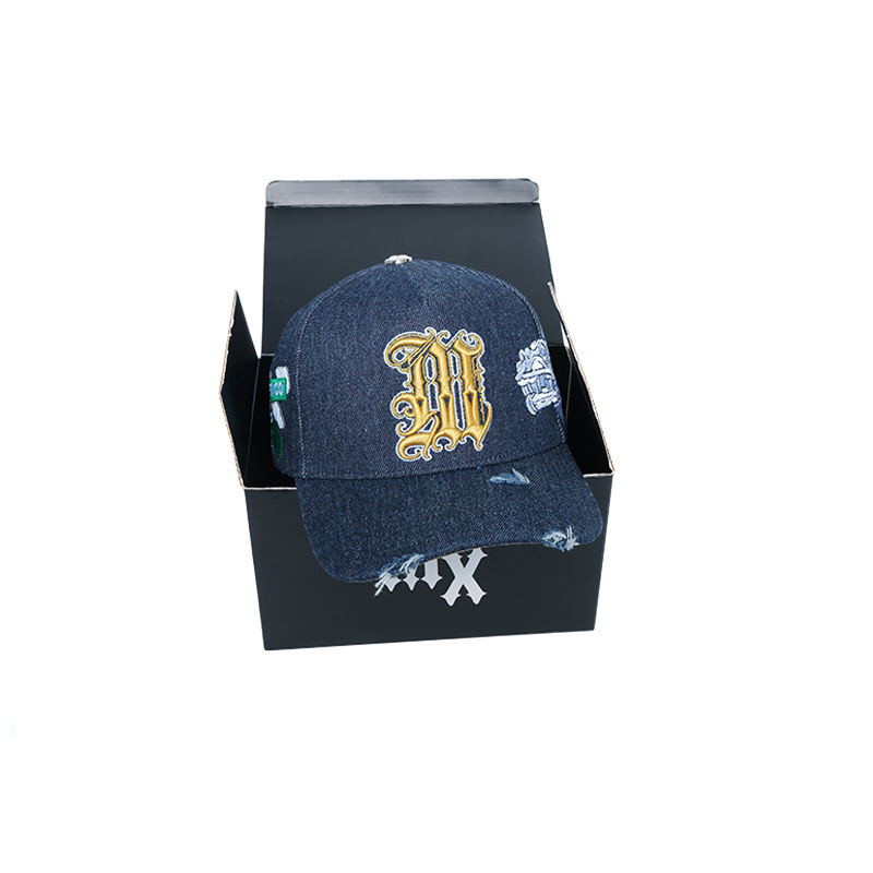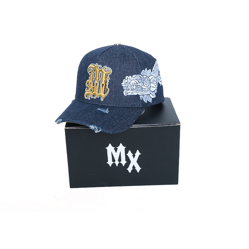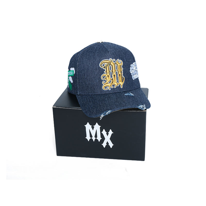 Nouvelle Arrivée Casquette Colorée 5 Panneaux en Denim Qualité Originale avec Broderie Dragon Effet Délavé sur le Côté, Visière en Daim et Doublure en Satin