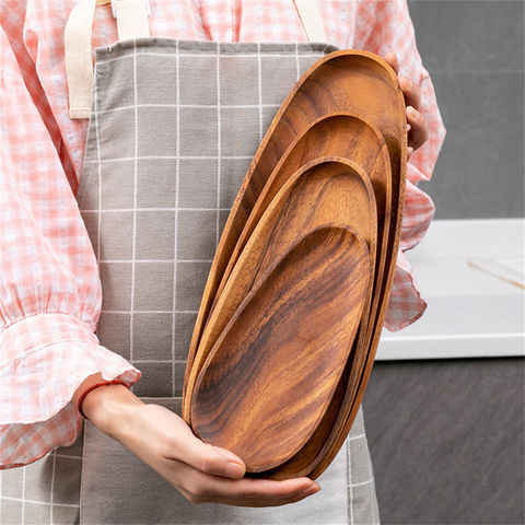 Nouveauté Ensemble de plateaux de service multi-taille en bois de manguier naturel pour collations et petit-déjeuner