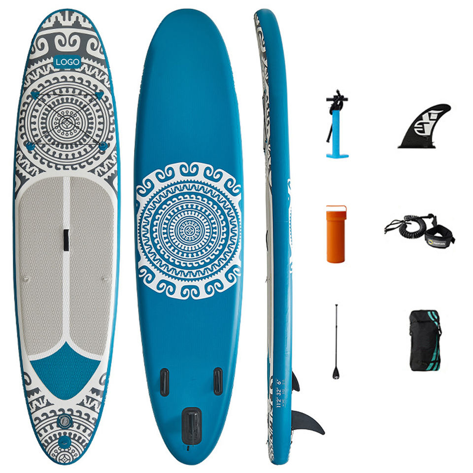 Nouvel arrivage de planche à pagaie gonflable en PVC bleu de style bohème ensemble de planche de surf debout personnalisée pour le sport marin