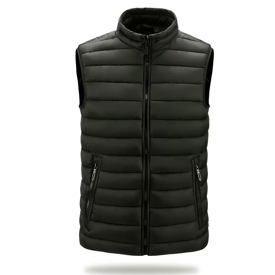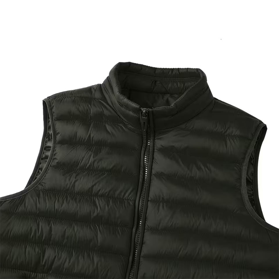 Nouvelle Arrivée Doudoune Unisexe Noire Pliable Rembourrée en Coton avec Fermeture Éclair, Chaude, Écologique, Col Montant, 400 g/m²