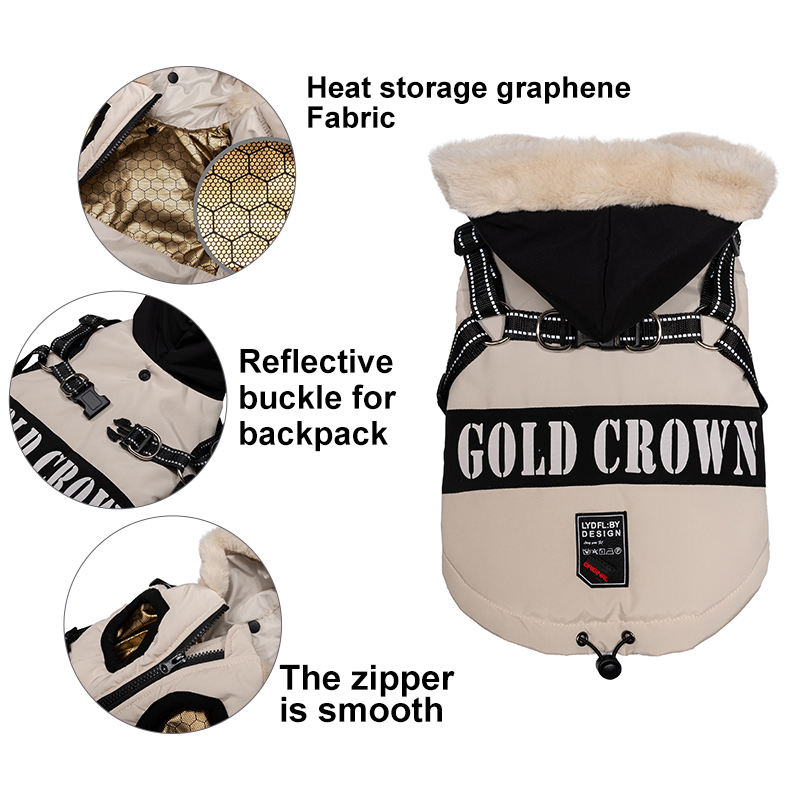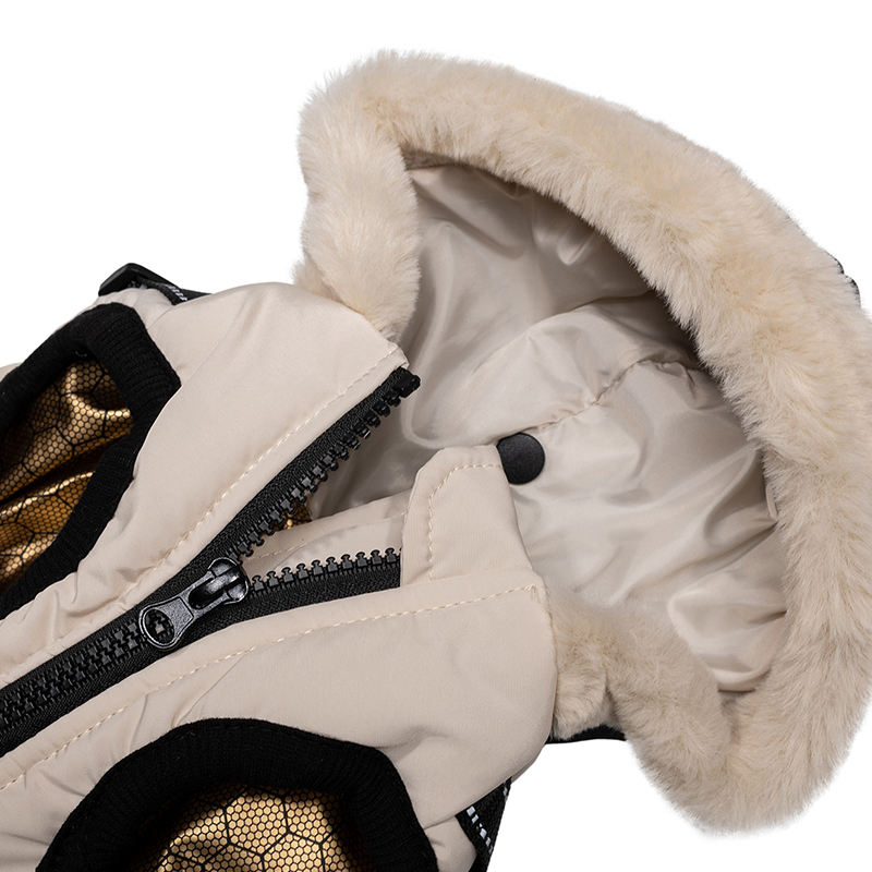 Nouvelle arrivée : veste pour animaux de compagnie avec capuche en fausse fourrure, imperméable, coupe-vent, respirante, en polyester, couleur unie, personnalisable pour chiens