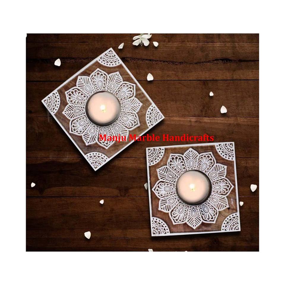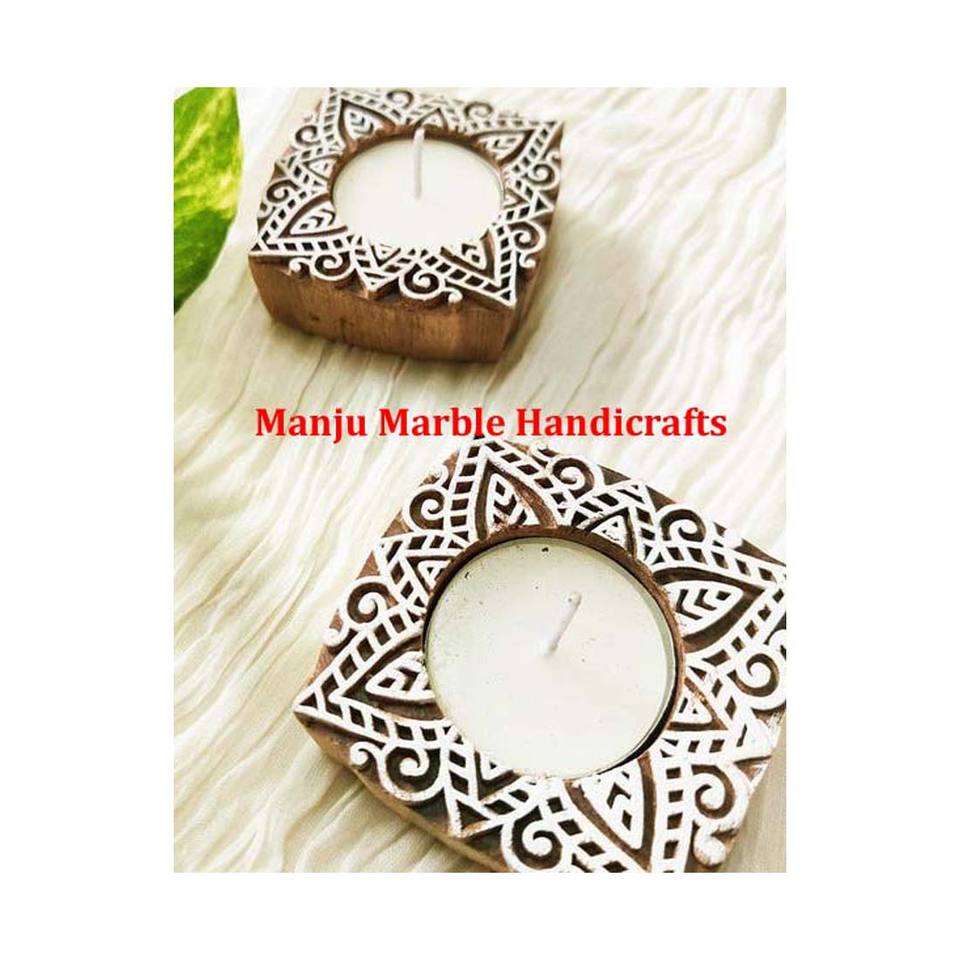 Nouvel arrivage de bougeoirs en bois différents et élégants avec forme de chapeau en bois poli naturel pour la décoration de bureau Diwali