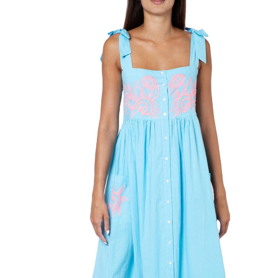 Robe longue florale de créateur sans manches à col carré et épaule réglable d'été brodée rose pour la fête, nouvel arrivage