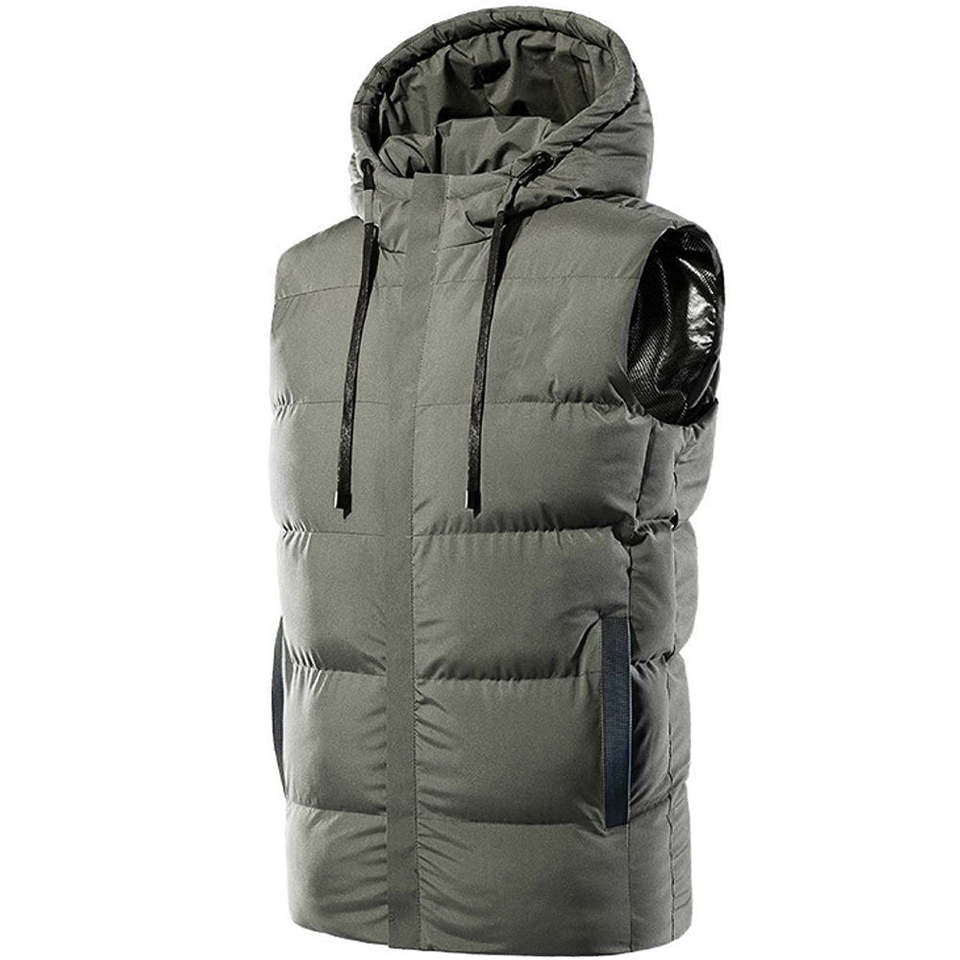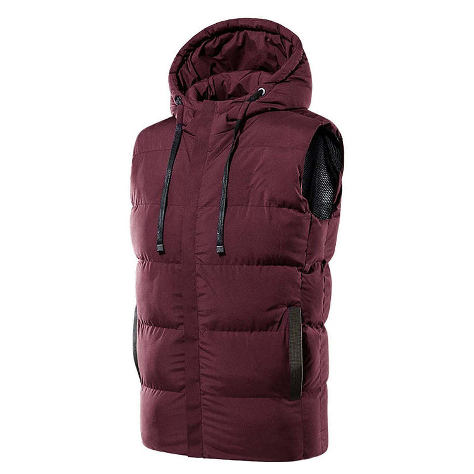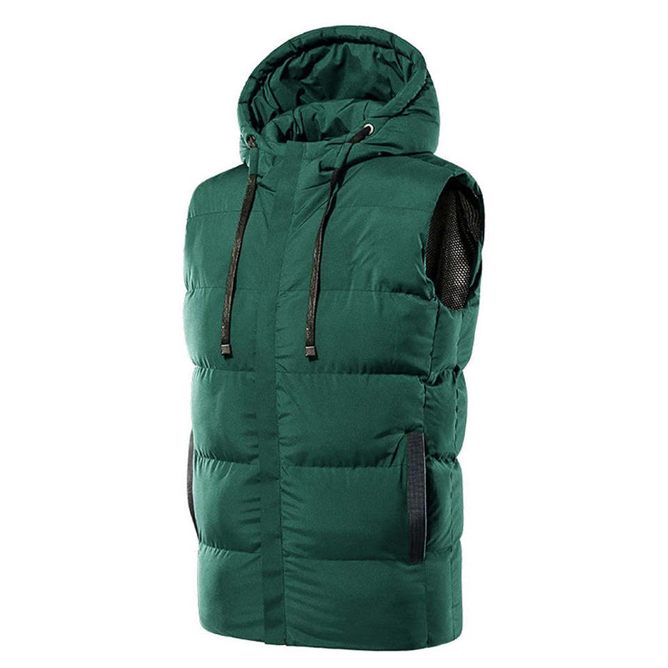 Nouvelle arrivée, veste matelassée sans manches pour homme, taille plus, tissu respirant, motif uni, fermeture éclair, veste matelassée à capuche pour homme