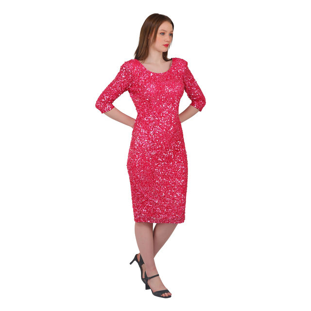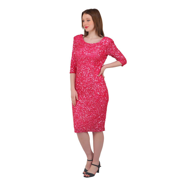Nouvelle arrivée, robe midi en sequins rose bonbon de qualité supérieure pour femmes, élégante, coupe ajustée, soirée cocktail