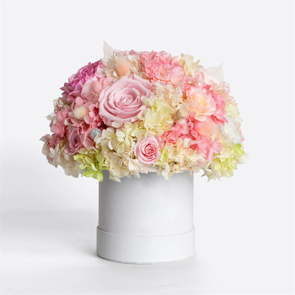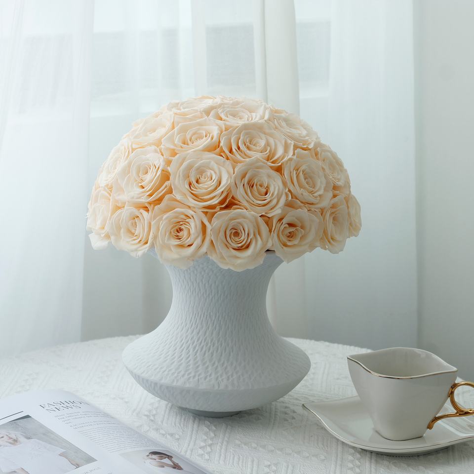 Nouvelle arrivée préservée rose dôme boîte vase en céramique avec rose éternelle pour la décoration de la maison