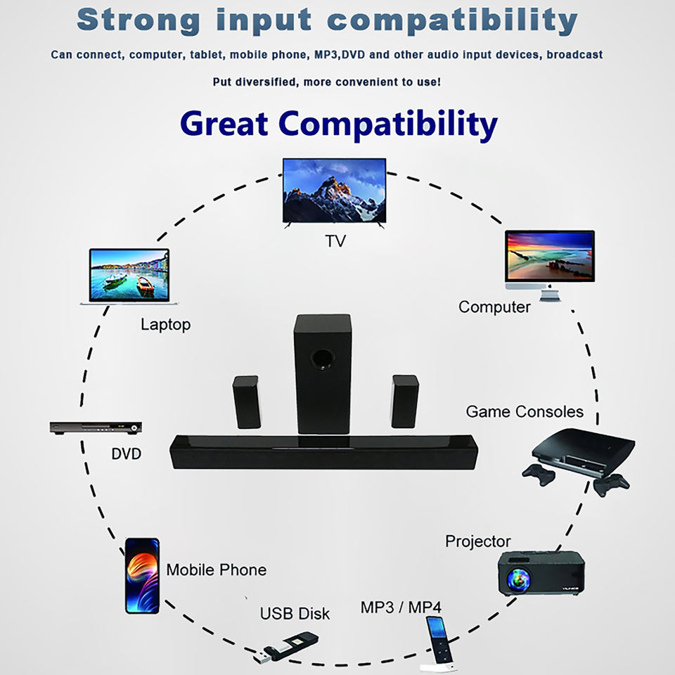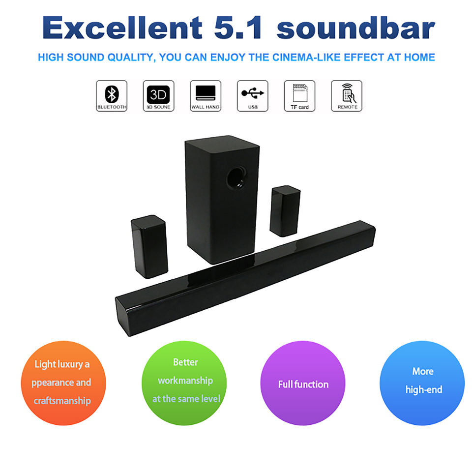 Nouvelle Arrivée Qualité 5.1 Barre de Son avec Subwoofer Bluetooth Sans Fil USB et HD MI Interface 3D Surround Home Cinéma Audio