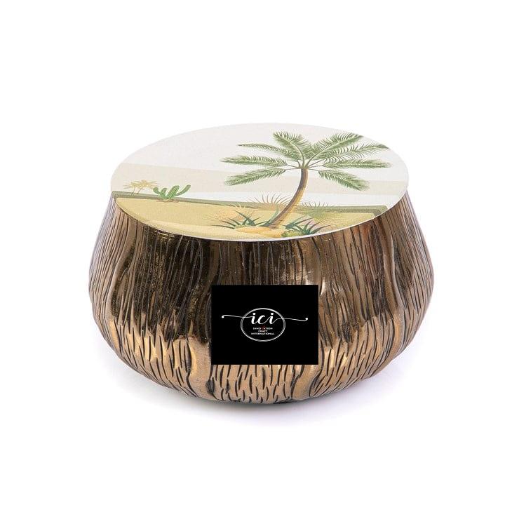 Nouvelle boîte en bois de qualité avec couvercle en métal texturé pour les fêtes du Ramadan à la maison et les décorations de vaisselle