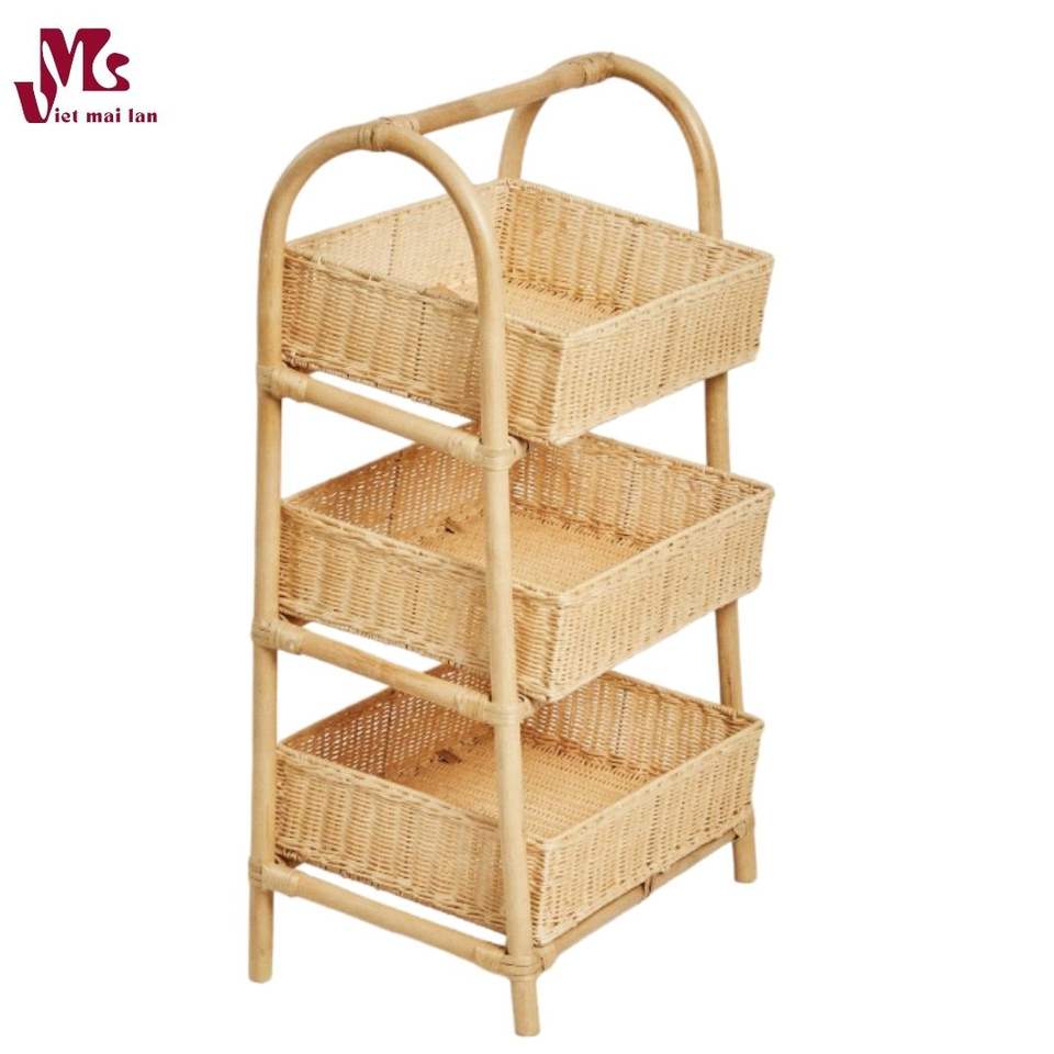 Nouvelle arrivée Table d'appoint de lit en rotin 3 étages étagère de rangement panier support de sol fournisseur en gros du Vietnam