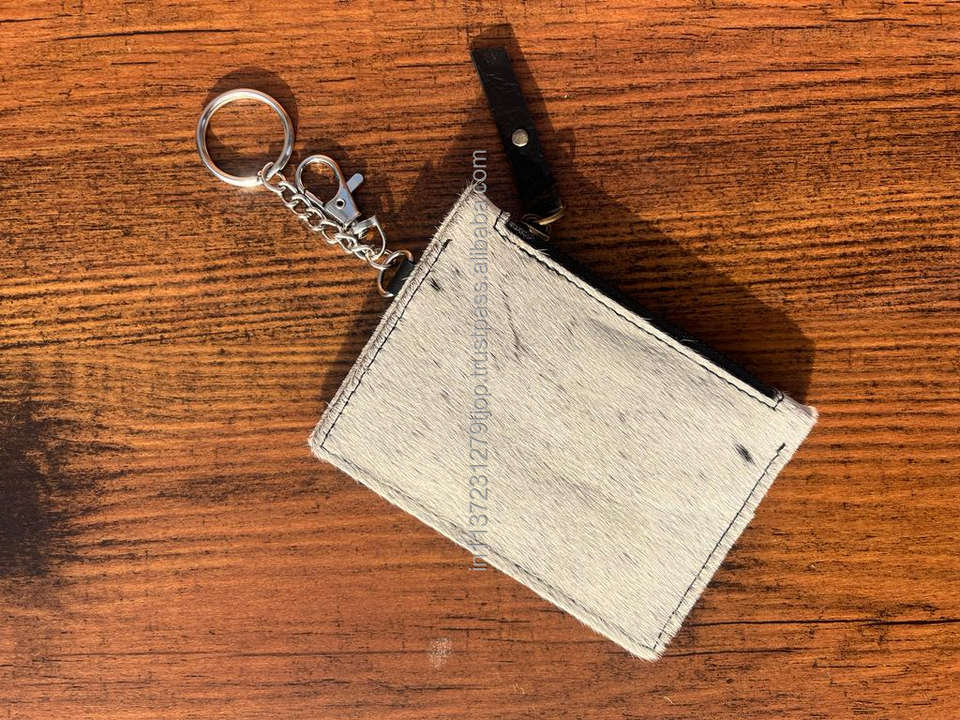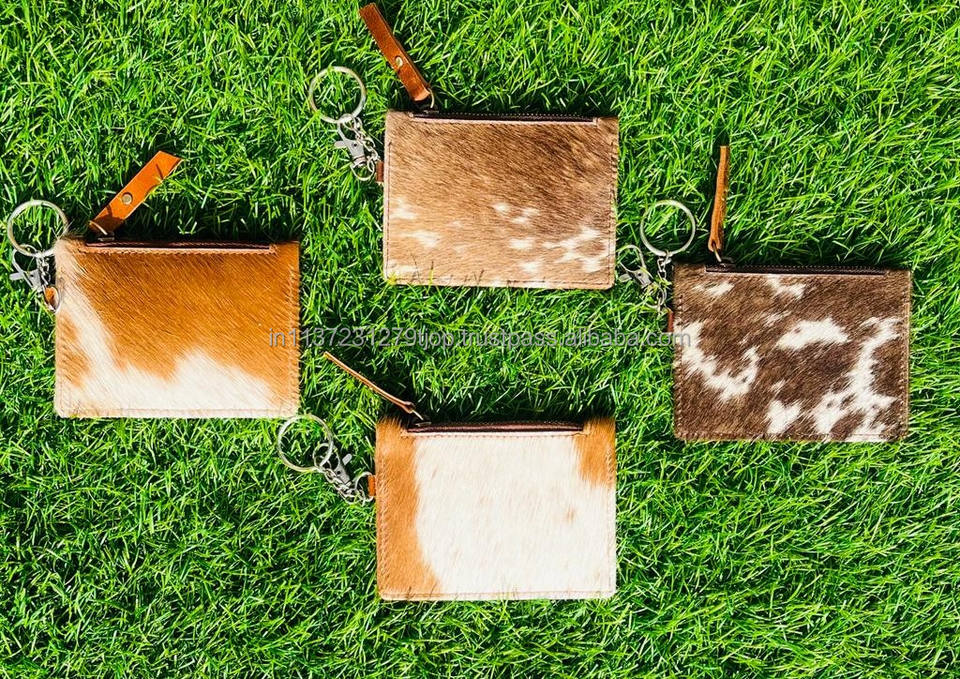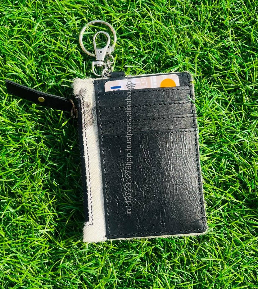 Nouvel arrivage Porte-monnaie et porte-cartes en cuir de fourrure de vachette véritable fait à la main Porte-cartes de crédit mignon et porte-monnaie avec porte-clés