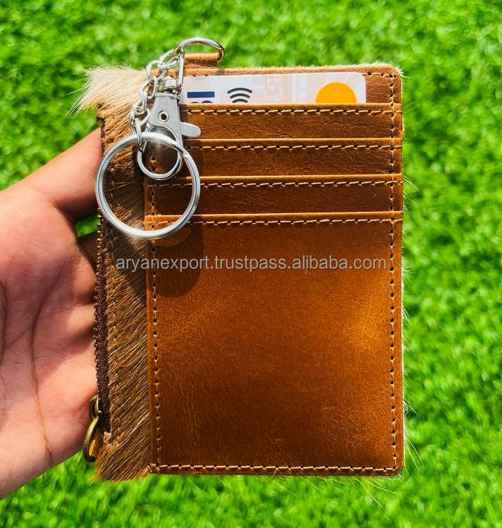Porte-monnaie et porte-cartes en cuir avec porte-clés, nouveaux arrivages de vrais cheveux faits à la main