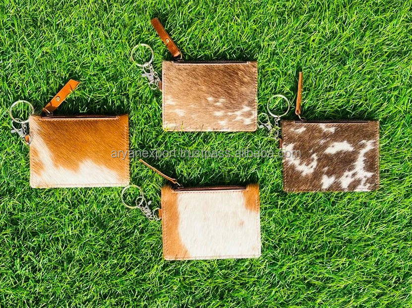 Stylish Cowhide Fur Leather Coin Purse And Card Holders