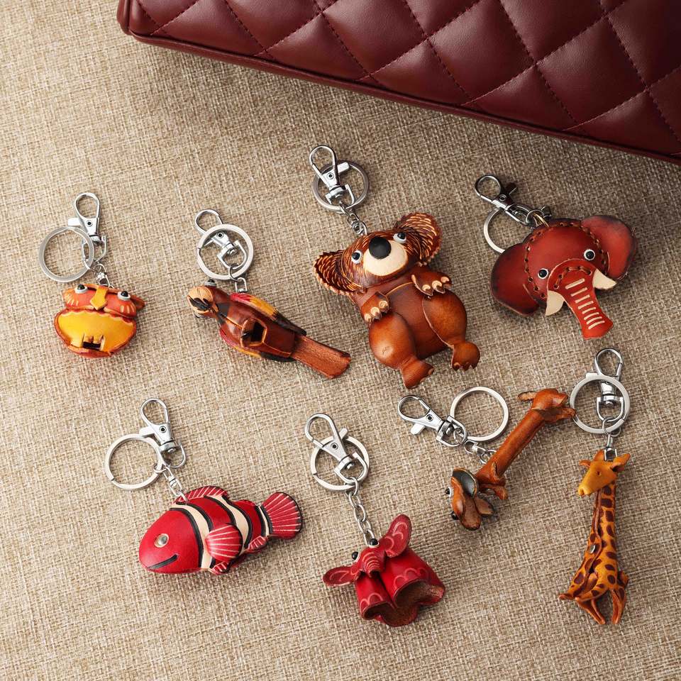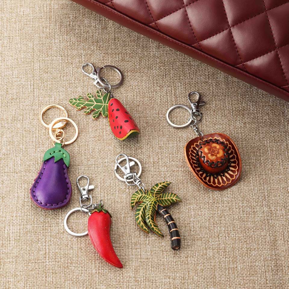 Nouveauté : Pendentifs 3D souples et réalistes en cuir véritable, inspirés de fruits, légumes et animaux mignons, pour porte-clés et breloques de sac à main