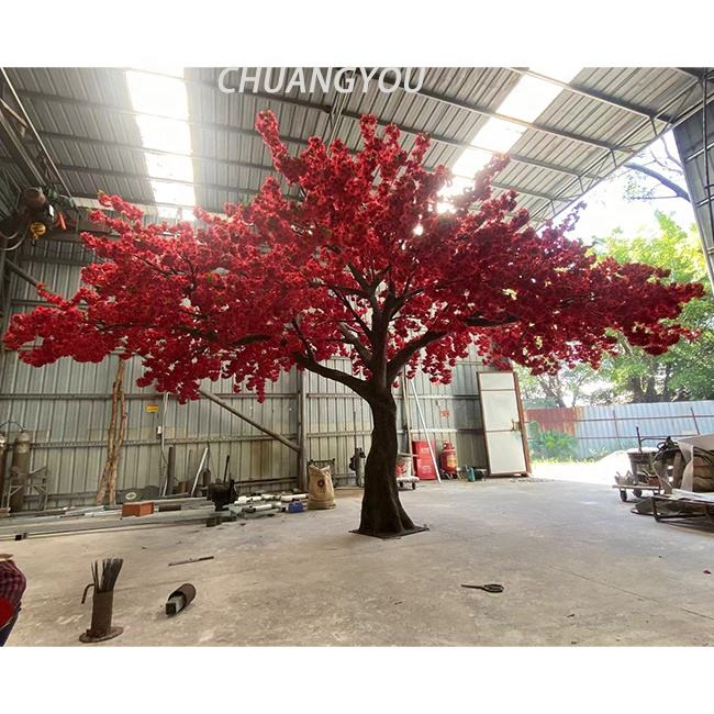 Nouvelle arrivée rouge 3.5m de haut et 7.5m de large grands arbres à fleurs japonais arbre à fleurs de cerisier artificiel pour la décoration extérieure de restaurant