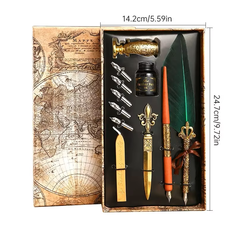 Nouvel Arrivage – Stylo Plume Rétro de Luxe pour Calligraphie, Plume Vintage, Coffret Cadeau, Pointe en Acier Inoxydable 0,5 mm, Idéal pour l'Écriture au Bureau