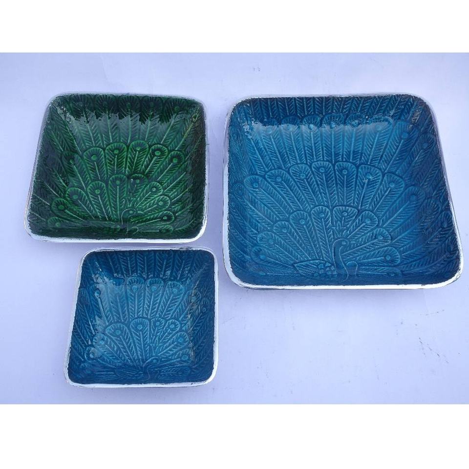 Nouvel arrivage d'assiettes rondes en fonte d'aluminium émaillé, lot de 4 assiettes de service en métal émaillé, assiettes de service en émail sans danger pour les aliments