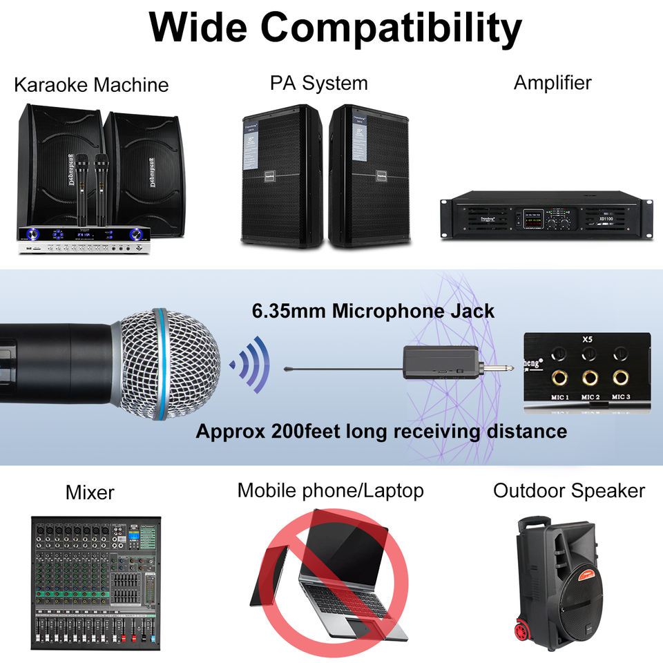 Nouveau microphone cardioïde portable professionnel S2-1, construction en métal et plastique, léger, réduction du bruit, sans fil UHF