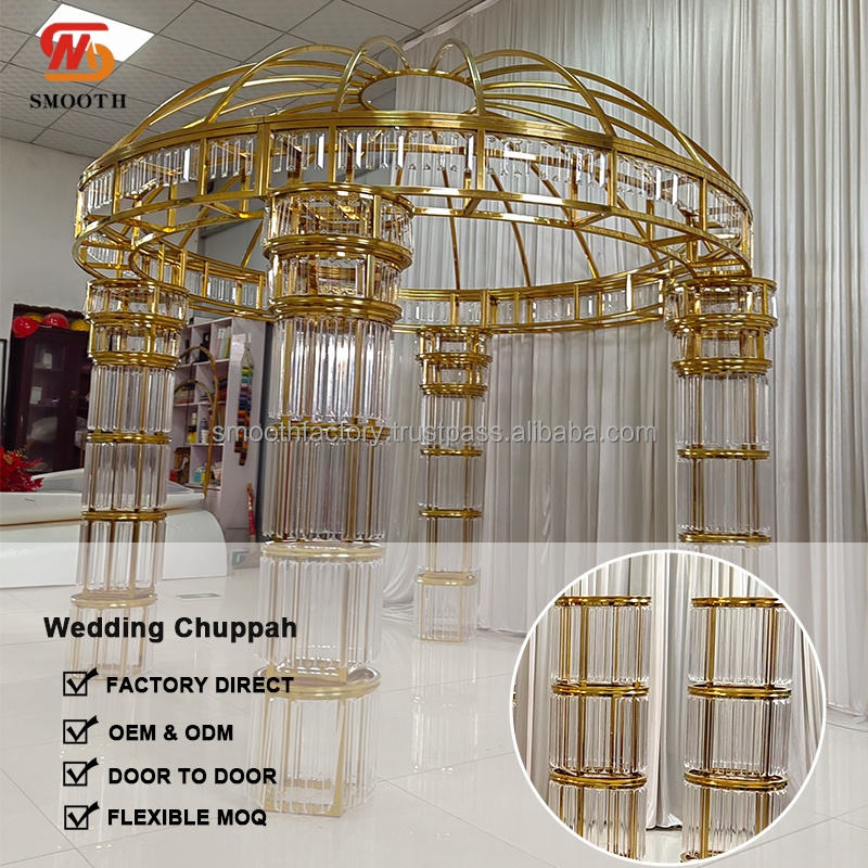 Nouveauté : Mandap Huppah de mariage rond en cristal lisse avec cadre en acier inoxydable, style simple