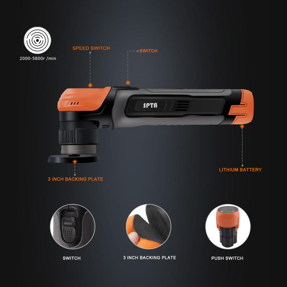 SPTA-Polisseuse rotative sans fil à batterie Li, double action sans balais pour polissage de voiture, CP201